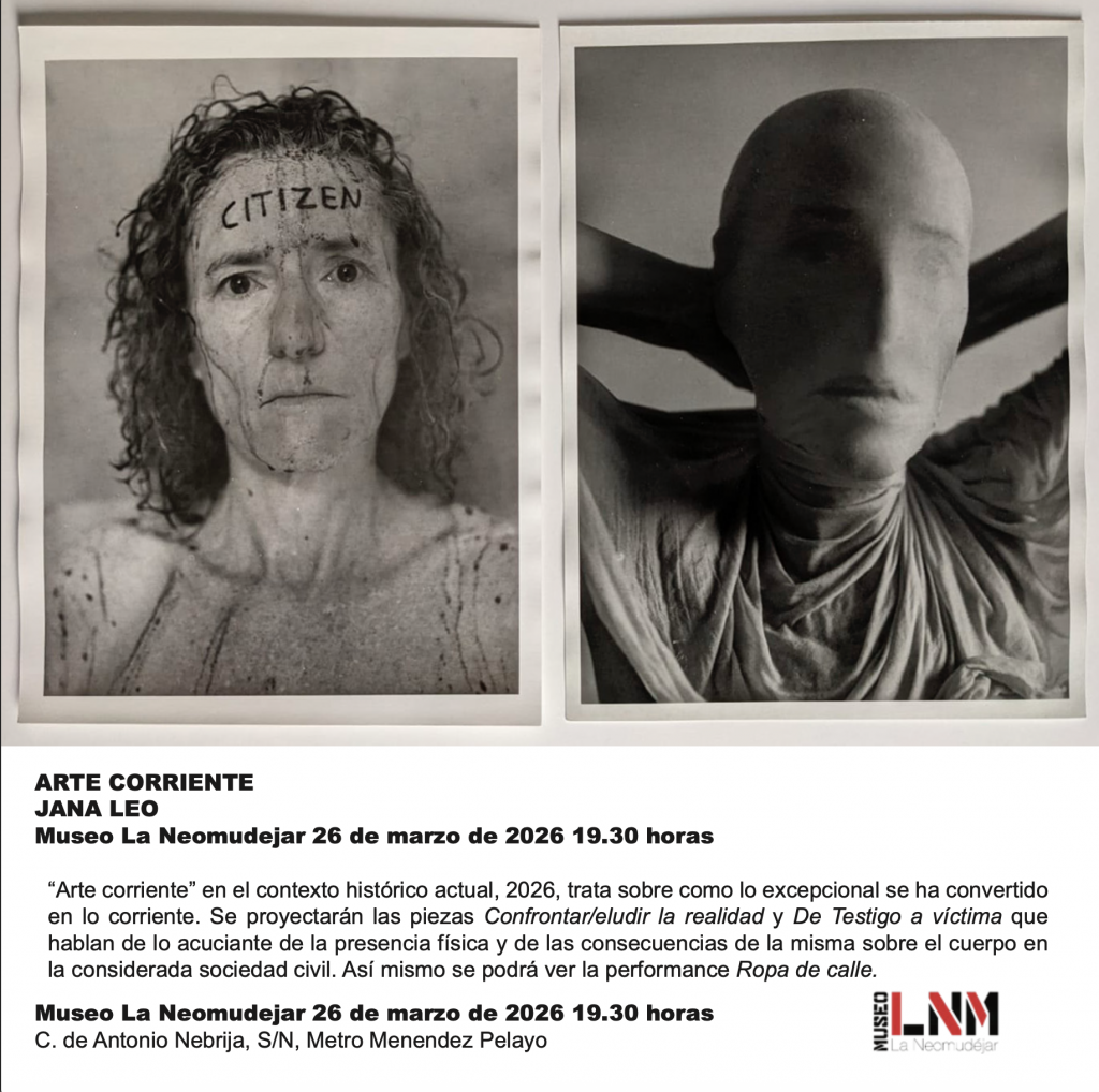 Empezamos con lo último: la nueva versión de nuestro App Art-rededor que aloja arte social, dándolo a conocer a los artistas que trabajen sobre eventos acaecidos en la ciudad como una plataforma para sus obras de arte con localización. Seguimos con “arte corriente” en el contexto histórico actual, 2026, que trata sobre como lo excepcional se ha convertido en lo corriente. Veremos las piezas Confrontar/eludir la realidad y De Testigo a víctima que hablan de lo acuciante de la presencia física y de las consecuencias de la misma sobre el cuerpo en la considerada sociedad civil. Sigue una breve performance.