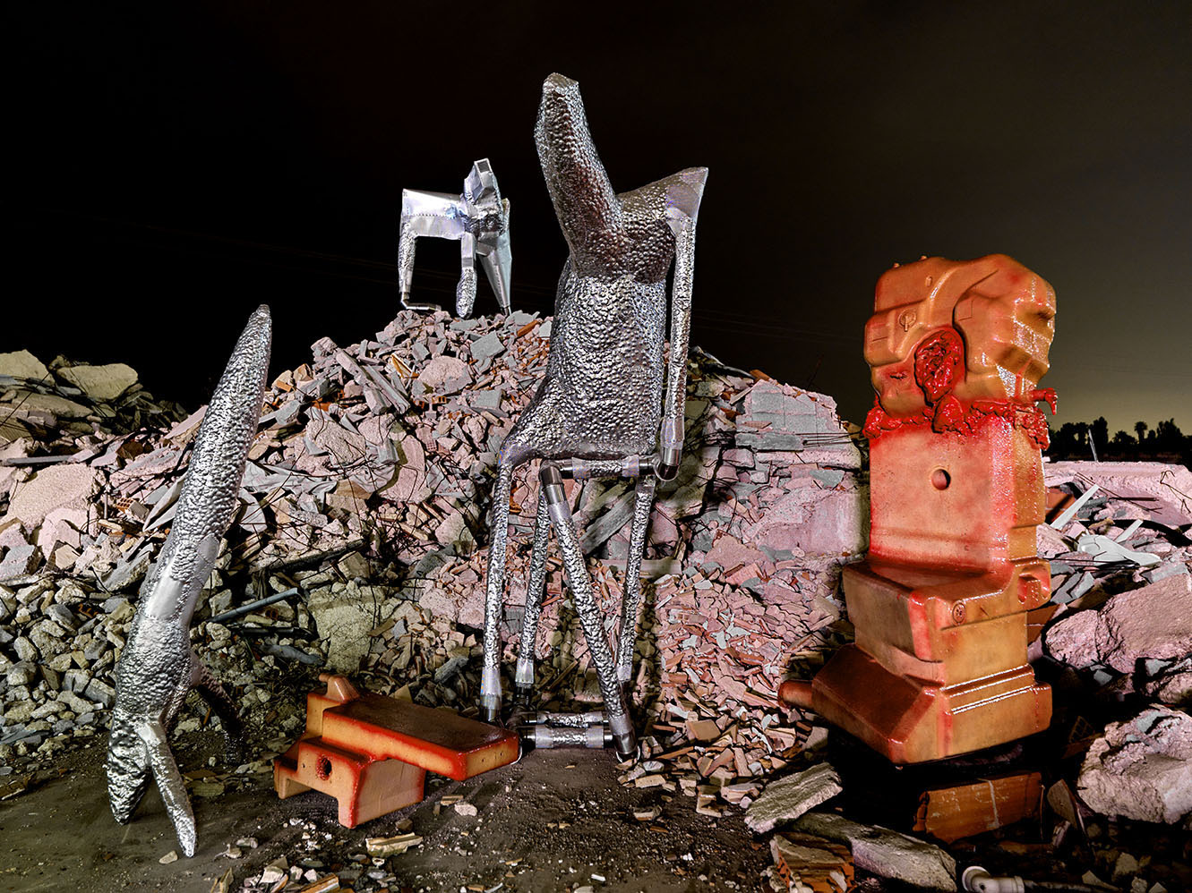 Deambular por el vertedero es salirse del flujo de producción, de consumo y de transacción monetaria. En dichos lugares prima la casualidad frente a la causalidad, nunca sabes lo que te puedes encontrar, nada te viene dado y organizado, todo lo contrario, predomina el caos y el efecto sorpresa. Uno se encuentra rodeado de fragmentos dotados del poder de la emancipación tras haberse deshecho de la unidad impuesta. Esto propulsa la imaginación y puede generar imágenes que, de estar el puzzle completo, no se darían. En ellos recojo parte de los materiales que luego introduzco en mi práctica escultórica.