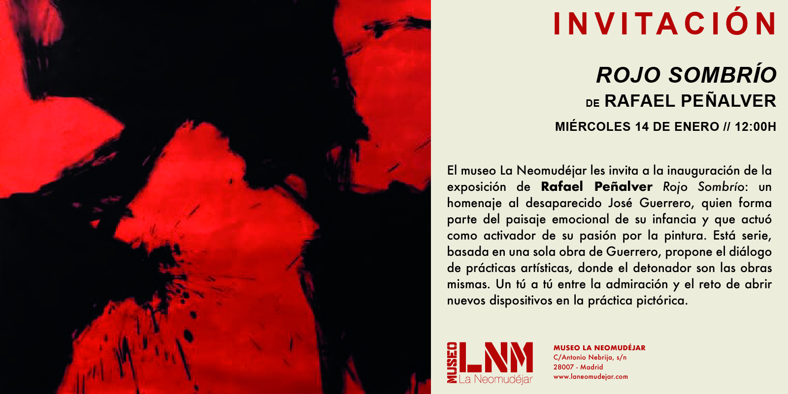 El Museo La Neomudéjar se complace en presentar «Rojo Sombrío», una exposición de Rafael Peñalver (Madrid, 1950) que trasciende el mero ejercicio plástico para convertirse en una liturgia de memoria y diálogo transatlántico. En esta serie, producida íntegramente en 2025, Peñalver rinde un homenaje explícito a la figura de José Guerrero, cuya obra homónima de 1964 actuó como el «big bang» emocional que despertó su vocación artística durante su adolescencia en el Museo de Arte Abstracto Español de Cuenca.
