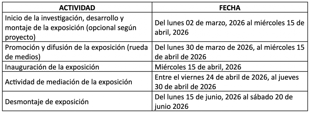 Art. 4.- La convocatoria tendrá validez desde su lanzamiento, 7 de enero de 2026, hasta la notificación del ganador o la ganadora de la convocatoria DEFORMACIONES 2026, para el uso de la SALA KUNANMI, mediante correo y redes sociales el miércoles 18 de febrero de 2026.